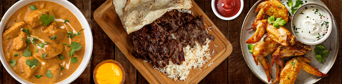 At H.M. Shawarma, our master chefs are dedicated to bringing you an unforgettable culinary experience. We pride ourselves on using only fresh, local, and premium ingredients to craft every dish on our extensive menu. Whether you're craving the smoky goodness of our signature shawarmas, the tender perfection of shish kebabs, juicy chicken kebabs, or rich lamb kebabs, we've got something to tantalise your taste buds. For those who love variety, our mixed grill platters are a must-try! Beyond the grill, we also offer spicy curries, flavourful biryanis, and classic jacket potatoes, ensuring there's a dish for every preference.